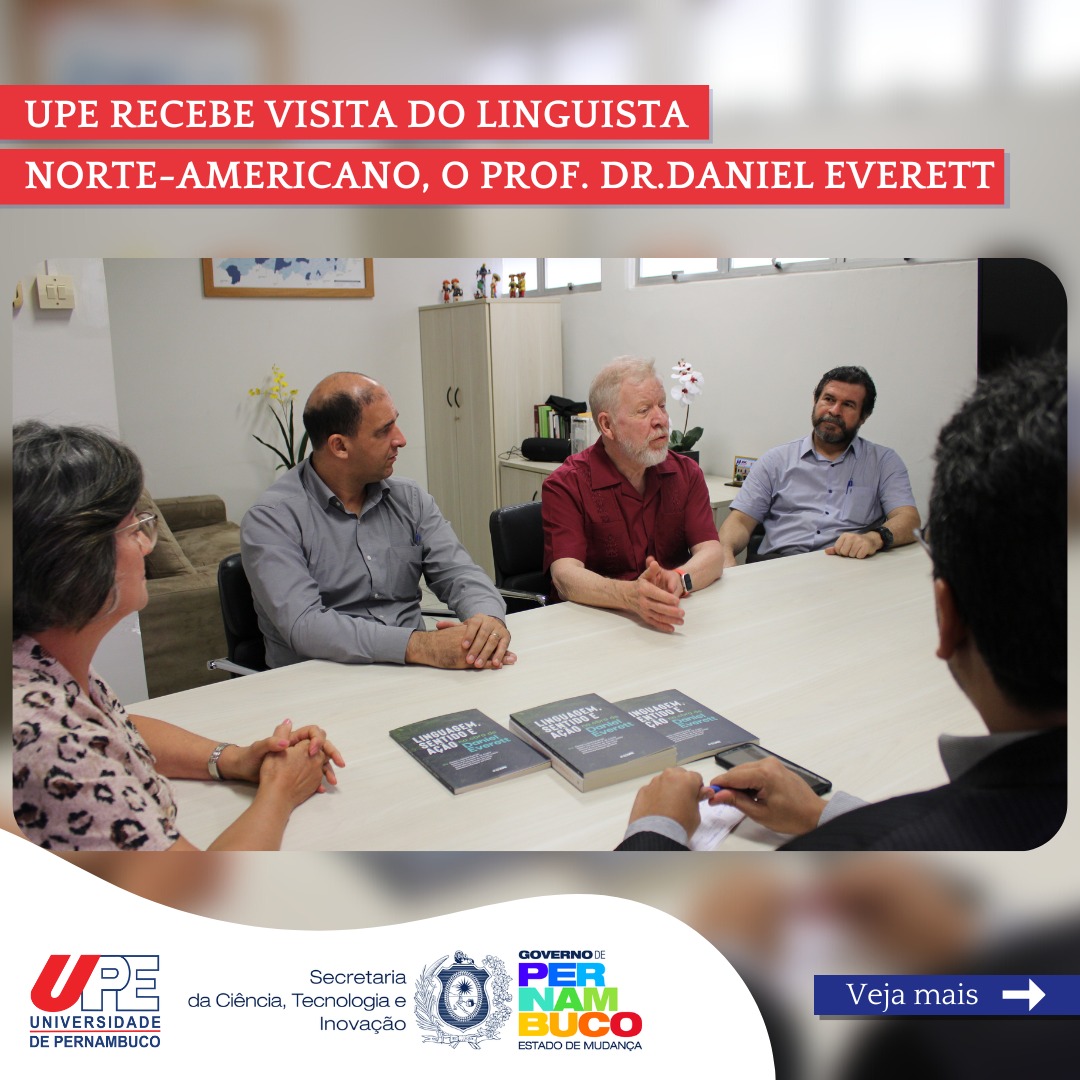 Daniel Everett é um dos mais renomados linguistas da atualidade, com pesquisas na área dos povos indígenas, especialmente sobre a língua Pirahã. O docente possui obras publicadas em inglês, português, alemão, mandarim, coreano, dentre outras línguas. Recentemente lançou o livro “Linguagem: a história da maior invenção da humanidade”, pela Editora Contexto. No início do ano de 2023, a EDUPE realizou a publicação da coletânea “Linguagem, Sentido e Ação na obra de Daniel Everett”, com discussões sobre as investigações do docente e os impactos nas ciências humanas. O projeto foi desenvolvido a partir das parcerias dos pesquisadores da UPE e da Universidade Católica de Pernambuco (UNICAP), integrando as ações do Consórcio Universitas. Para os interessados, as informações estão disponíveis no site da EDUPE: www.edupe.upe.br